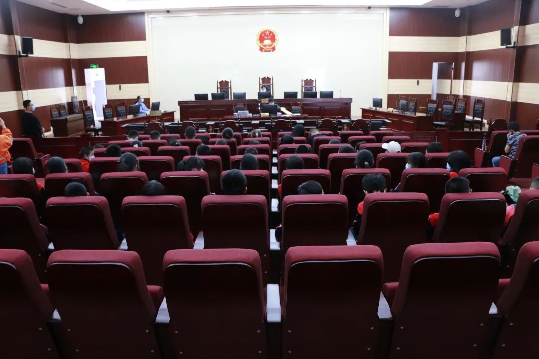 在科技法庭,学生们旁听了一起交通肇事案件的庭审。整个庭审过程严肃庄重、程序规范,让学生更加直观了解法庭纪律、法庭辩论等庭审过程,深刻感受到法律的威严与违法犯罪带来的严重后果。