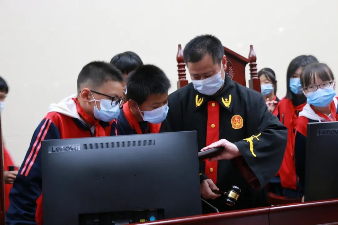 在审判法庭,陈高顺法官通过浅显易懂的语言、生动真实的案例,向学生们解读了新修订的《未成年人保护法》、预防校园霸凌等法律知识,给学生们上了一堂生动的法治课,增强学生们的法治意识。随后,同学们转变角色,有序地走上审判台,拿起法槌,当了一回“小法官”,“零距离”感受到了法律的神圣与庄严。