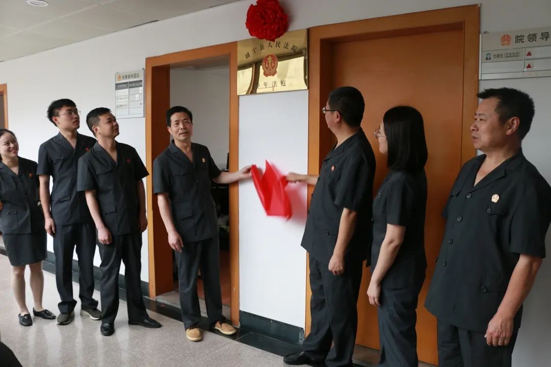 为切实做好新时代未成年人权益保护和犯罪预防工作,在“六一国际儿童节”当日,周宁法院举行少年法庭揭牌仪式。院党组书记、院长巫东、党组副书记、副院长许伟、党组成员、副院长熊树海及综合审判庭相关人员参加揭牌仪式。