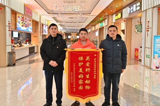 2月6日上午,市自然资源和规划局武进分局的工作人员来到沪常高速武进区太湖湾服务区,将一面印有“关爱野生动物 保护美好家园”的锦旗送到小伙李报手中,感谢他积极救助国家保护动物。