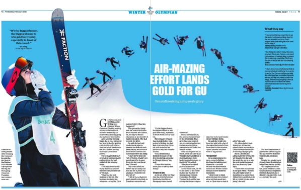 2月9日刊发通版图文报道《谷爱凌大跳台夺金》