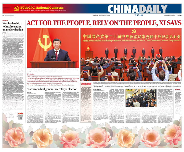 10月16日《中国日报》推出“向党的二十大献礼”八联版