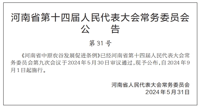 第一条 为了促进中原农谷创新发展,建设国家现代农业科技创新高地,推动实现种业科技自立自强、种源自主可控,维护国家粮食安全,根据有关法律、行政法规,结合本省实际,制定本条例。