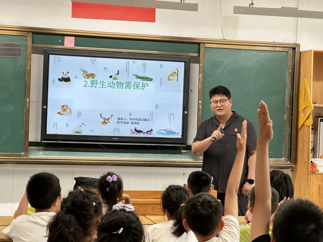 课堂上,铁路部门向学生们详细讲解了铁路安全常识、路外安全防护措施,并分发铁路安全知识宣传册为他们提供实用的涉铁出行安全建议。徐铁法院的法官们则用通俗易懂的语言,为学生们解读了这些安全常识背后的法律条款,通过典型案例让他们了解到出行中可能遇到的法律风险,引导学生们成为家庭的“小小法治监督员”,在乘坐火车出行时自觉遵守法律法规,防范安全风险。学生们积极互动,对涉铁安全知识和法律风险防范表现出浓厚的兴趣,特别是在讲到出行可能遇到的“切勿击打列车”“注意行李架上行李”“小心列车门闭合”等涉铁安全行为及出游时“哪些动物不能吃”“哪些工艺制品不能买”的生态环境法律风险时,孩子们踊跃参与、积极作答。课堂气氛活跃,笑声此起彼伏,广大师生们在轻松愉快的法律氛围中加深了对铁路安全知识、铁路法规和出行法律风险的理解掌握,铁路安全与生态环境保护意识播撒到每个人的心田。