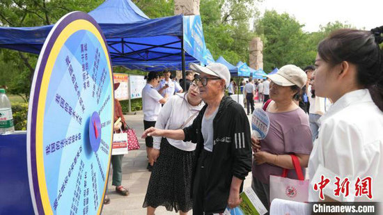 法治公园里,81岁的李高旺在普法转盘游戏中,答对所有问题完成通关,得到了期望的奖品,“这样的法制宣传特别有意思,还能学到新知识,点赞。”