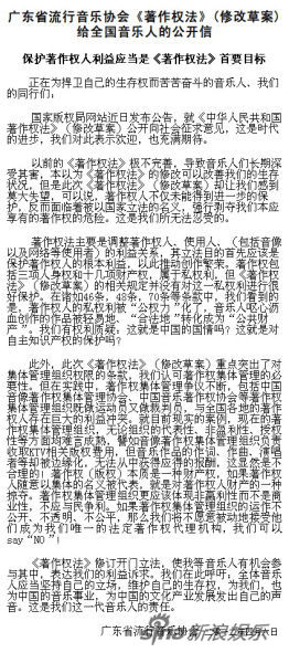 广东省流行音乐协会《著作权法》(修改草案)给全国音乐人的公开信