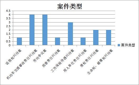 在所有案件中涉及工伤赔偿与侵权赔偿的案件包括机动车交通事故责任纠纷在内的8种案件类型,具体如下图: