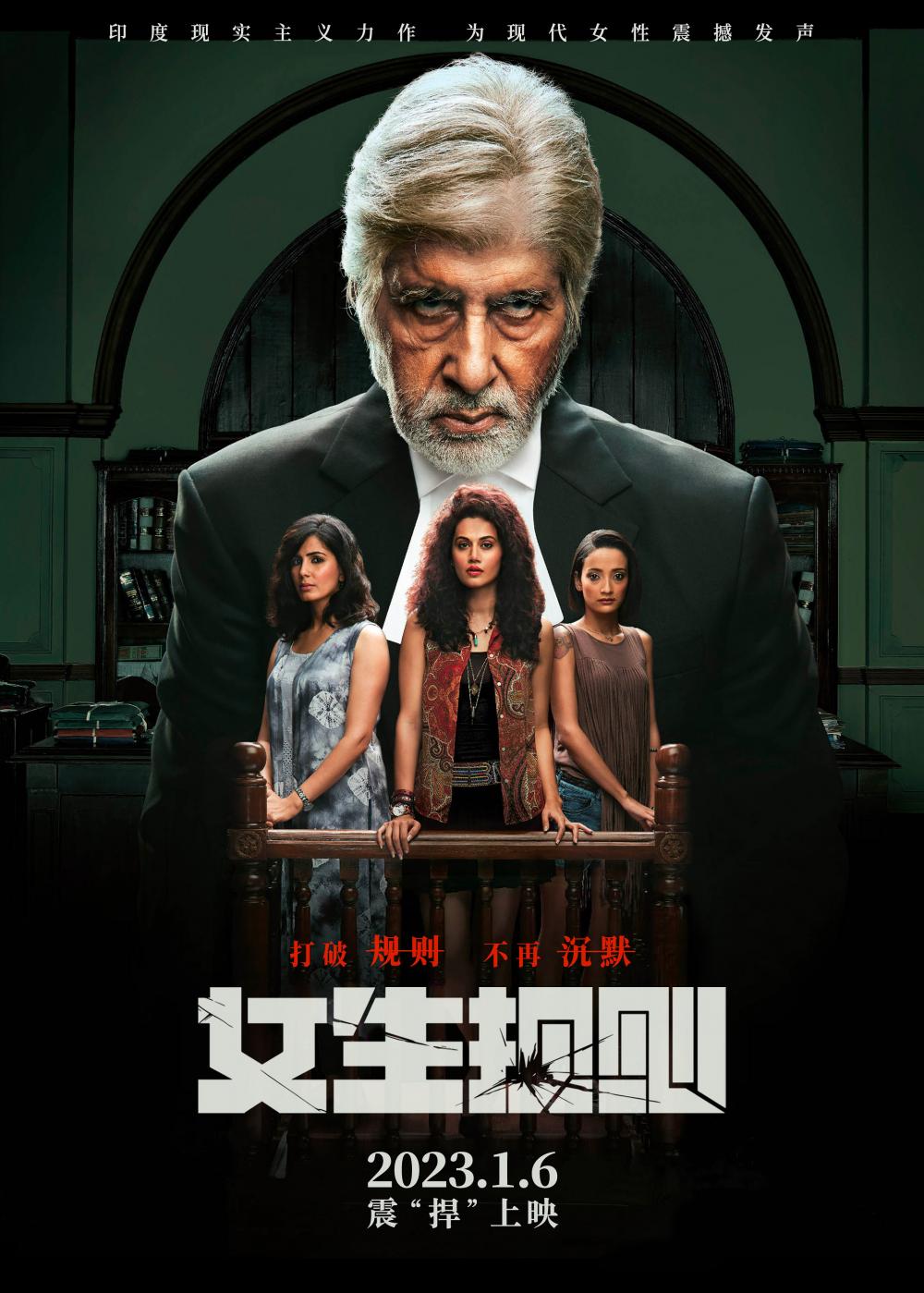 定档海报中,“女生规则”四个大字破损裂开,暗指传统社会要求女生必须遵守的规则需要被打破!海报上,三位女生相伴站在原告席,原本是受害者的女孩却反被诬告成勾引男生、实施暴力的罪犯。面对无处不在的指责,她们眼神无辜却依旧坚定。而伫立在她们背后的则是一名顶尖律师,当一条条咄咄逼人的“规则”宣告着女孩们的“不清白”,他将用一场极致法庭辩论撕破印度社会黑暗面,挑战束缚现代女性的传统偏见,为女孩们震撼发声。