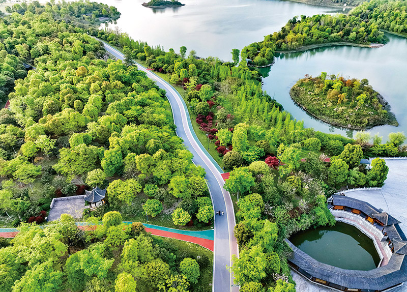 湘赣边区域合作示范区建设坚持绿色发展,迸发出新的活力。图为江西省萍乡市将治水与绿化相结合,沿萍水河打造的萍水湖湿地公园。 新华社发 李桂东/摄
