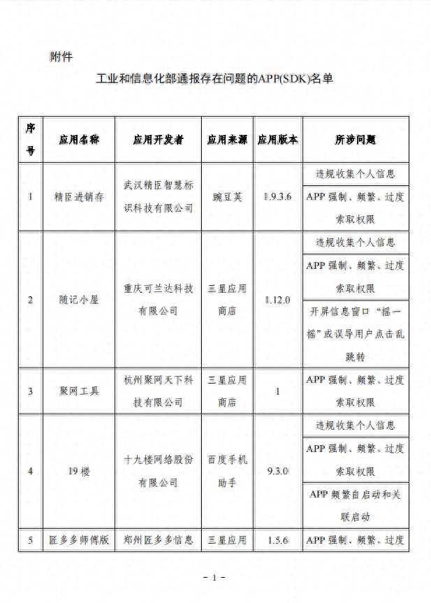 附件:工业和信息化部通报存在问题的APP(SDK)名单