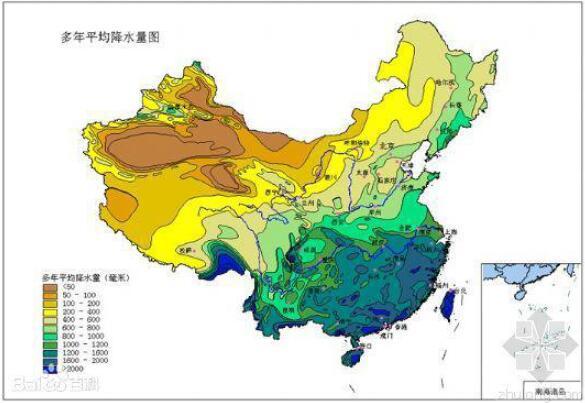 从我国多年平均降雨量图可知,我省大部分行政区划均位于年降雨量400毫米的区域。按照该图所示,我省风电项目是受“年降雨量400毫米以下区域的有林地”影响较大的区域。