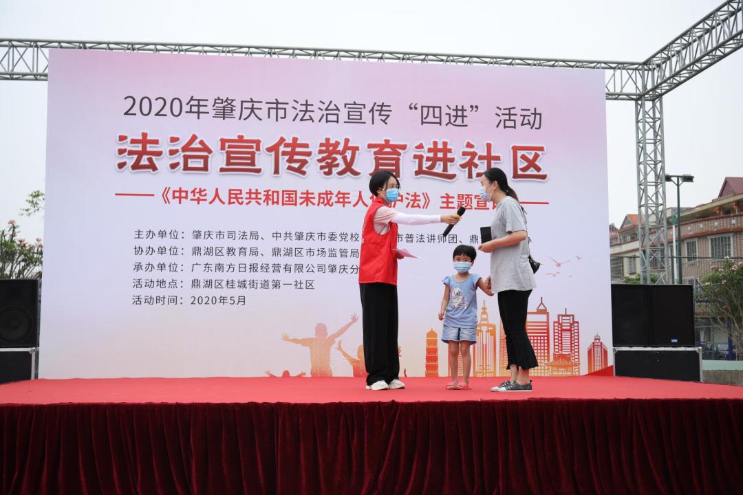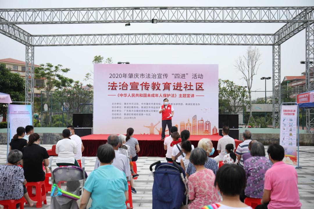 5月24日,2020年肇庆市法治宣传“四进”活动走进鼎湖区桂城街道第一社区体育公园,肇庆市司法局、中共肇庆市委党校、肇庆市普法讲师团、鼎湖区普法办、鼎湖区教育局、鼎湖区市场监督管理局、鼎湖区桂城街道办事处联合开展《中华人民共和国未成年人保护法》主题普法活动。