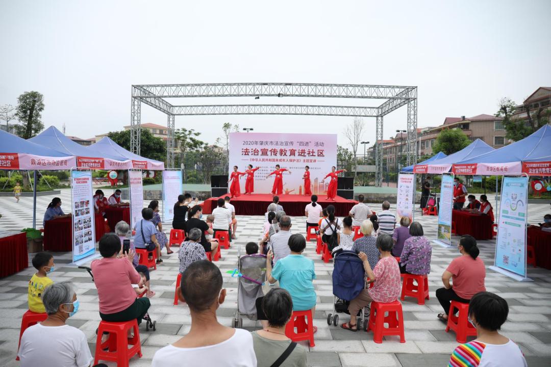 除了主题宣讲之外,本次活动,还通过展示法治宣传教育成果、设置法律咨询志愿服务岗、发放法律法规宣传资料等方式开展法治宣传活动。同时,普法活动也加入了音乐快板《说普法》、歌舞《肇庆美》和歌舞《文明在哪里》等群众喜闻乐见的艺术表演形式,以法治宣传为主线,与全国文明城市创建紧密结合,让群众在欣赏文艺表演的同时学习法律知识。