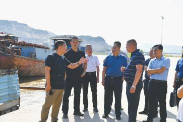 兰州市检察院办案组干警在黄河草地公园码头督促整改违规停放采砂船问题。(资料图片)