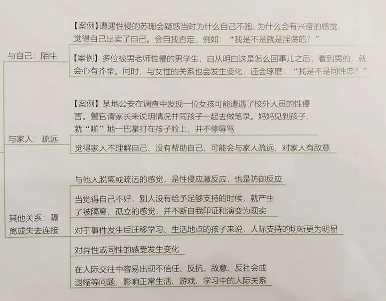 一些人认为孩子身体没有实质性伤害,避而不谈,创伤才会随时间淡化。对此,心理咨询师告诉我:“实际上,最大的创伤不是身体而在心理。它不仅包括自我概念、自尊、安全感、信任感、人际界限等,还在潜意识中尤其在未经妥善处理的潜意识下,影响家庭和社会。”
