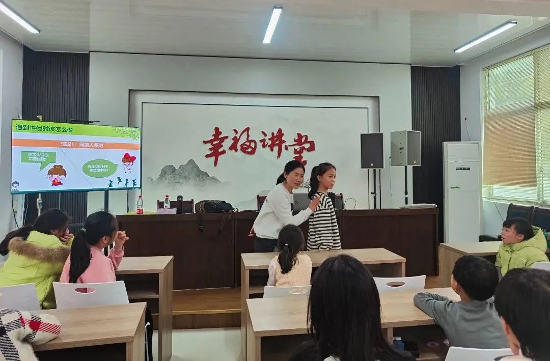 平阳县“家教学堂”城乡行活动走进顺溪镇,志愿者讲师钟冬林为20余名孩子讲授了一堂“爱护我们的身体”儿童防性侵课程,并发放防性侵手册学生版。活动现场,志愿者老师通过图文解说、互动游戏、情景模拟、趣味问答等方式,由浅入深地为孩子们讲解生理知识,教授正确辨别和防范性侵害的方法。孩子们在轻松的游戏与互动中,增强了自我保护意识,提升了自护自救能力。