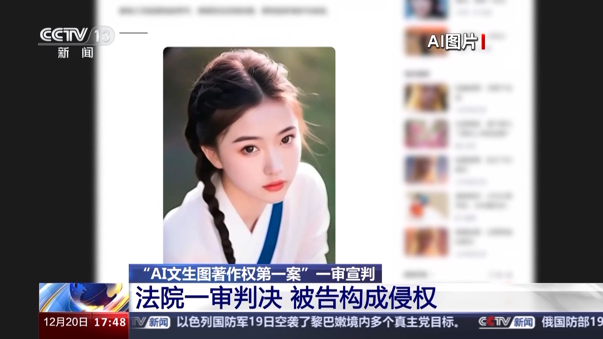 生成式人工智能,也被称为AIGC,它是指由AI,也就是人工智能算法生成的内容。比如说,只需要输入一些提示词,AI就能相应地产出你想要的文章、视频、音频、图像等。不过,利用AI,也带来一些法律纠纷,就比如,盗用了别人用AI生成的图,算侵权吗?北京互联网法院就针对一起“人工智能生成图”著作权侵权纠纷案,做出一审判决,这也是我国首例涉及“AI文生图”著作权案件。