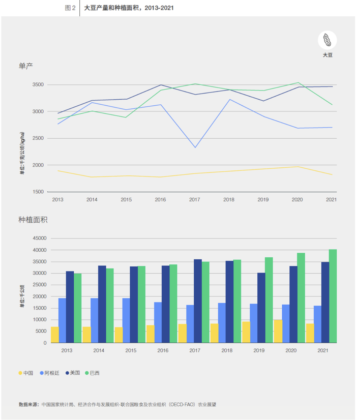 实际上,企业承诺采购零毁林的软商品是一个战略性的决策和选择,并不一定意味着效益上的让步。数据显示,实现零毁林的飞跃在操作上并不像惯常想象的那样复杂,在成本上也是可以接受的。根据巴西的大豆产量可计算得出,在高毁林风险的地区生产1吨大豆,平均需要砍伐0.32公顷的热带雨林或将其转为农业用途。数据显示巴西在2021和2022年分别损失了299万公顷和331万公顷的树木植被,其中平均18%由油料作物造成;计算得出,油籽生产导致的林木覆盖面积损失总计为113.4万公顷。也就是说,以2020年12月31日为截止日期,巴西生产的354万吨大豆与毁林有关。这仅占不到中国进口总量的6%。从此角度来看,进口企业还有相当大的回旋余地。