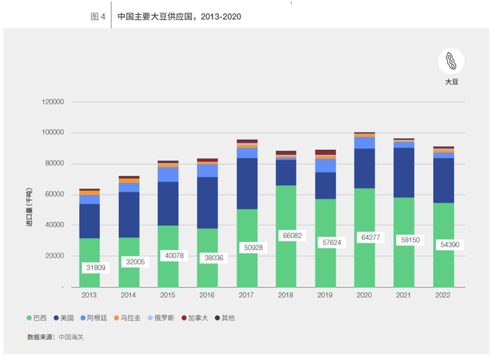 欧盟和中国是巴西农业产业发展最重要的两个贸易伙伴。欧盟是巴西咖啡出口的主要目的地,是巴西大豆、油棕及其衍生品的第二大目的地,也是巴西牛肉、木材及其加工产品、可可和橡胶的第三大目的地。据估计,在2022年,《欧盟零毁林法案》中所涵盖产品的出口额达到175亿美元。转观中国,2022年,中国进口了5439万吨来自巴西的大豆,牛肉来自巴西的进口量占中国进口总量的50%以上。同时,考虑到中美关系和《欧盟零毁林法案》的影响,巴西和中国之间的贸易值得更多关注和分析。