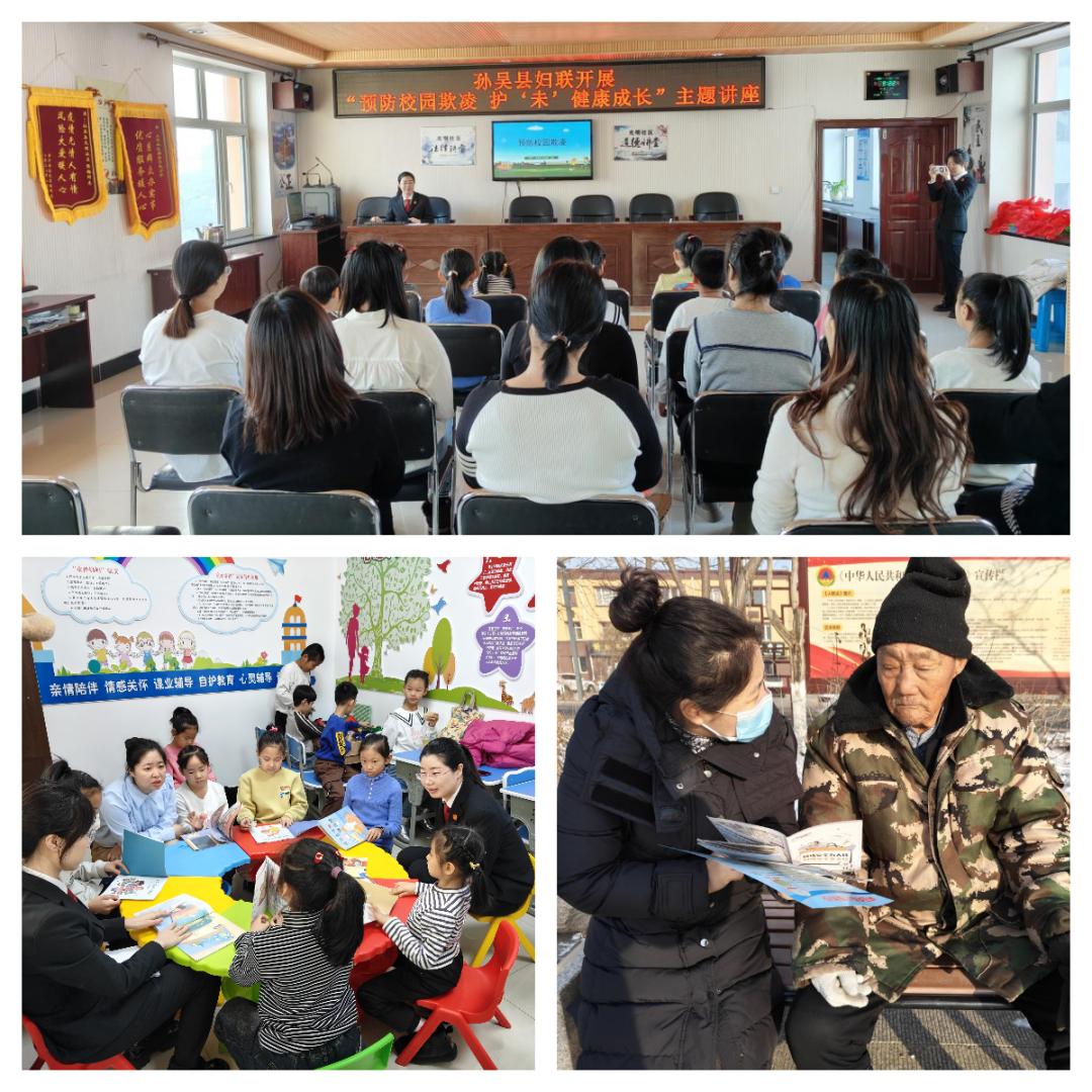 孙吴县妇联于春节前夕,开展反电信诈骗宣传活动。详细向老年人介绍“刷单”、“杀猪盘”等网络诈骗形式,增强老年人防诈骗意识,保护自身的财产安全,护好老年人的“养老金钱袋子”。在社区家长学校开展安全教育活动,同时邀请县法院作了“预防校园欺凌 护‘未’健康成长”的讲座,引导孩子们在学校遭受校园欺凌时如何正确运用法律武器保护自身合法权益,做到“不做暴力的欺凌者、不做沉默的受害者、不做冷漠的旁观者”。系列普法活守护“一老一小”过一个祥和快乐的新年。