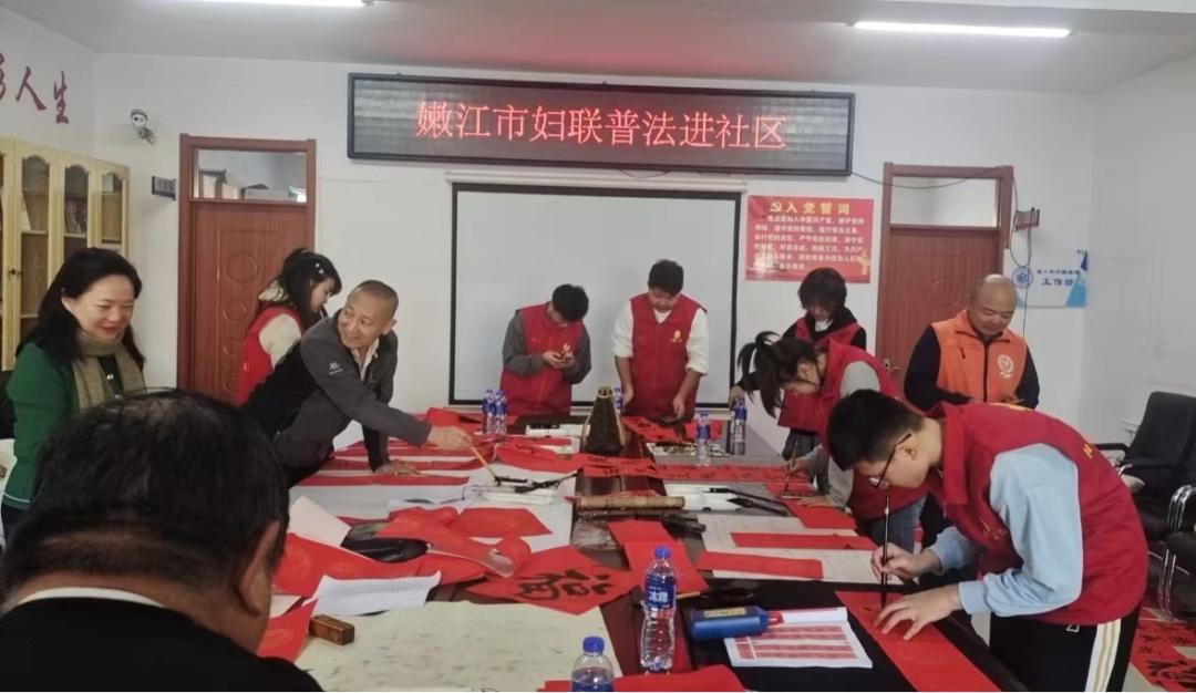 嫩江市妇联深入社区,与社区群众共同开展新年增年味儿普法活动,通过写春联、分享司法故事、解答司法问题等环节,在欢乐祥和的氛围中,增强群众的法律意识,牢固树立群众的法治观念,让健康、安全、知法、守法成为嫩江居民春节期间最温暖的底色。