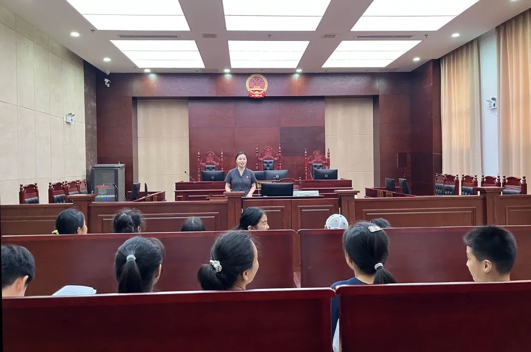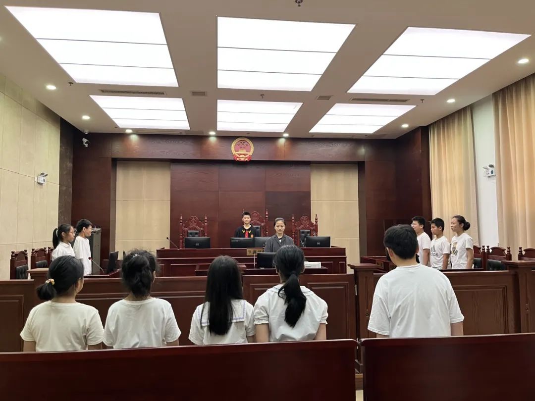 法院干警带领同学们参观了法庭,详细介绍了案件审理流程,并通过模拟法庭的方式,让同学们切身体会法律的庄严和神圣,强化法律意识,提升法治素养。