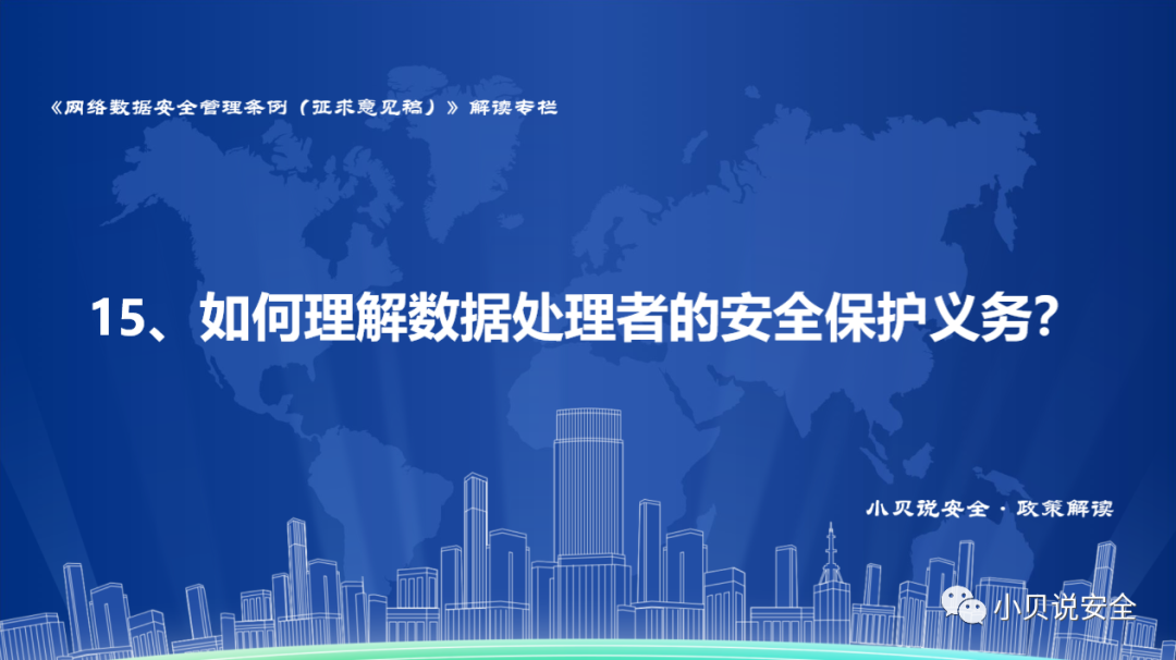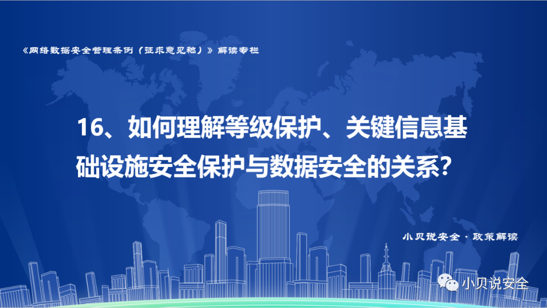 11月14日,国家互联网信息办公布了《网络数据安全管理条例(征求意见稿)》。为此,小贝说安全设立《网络数据安全管理条例(征求意见稿)》(后文简称《条例》)解读专栏,以百问百答的形式对《条例》进行系列解读。