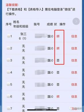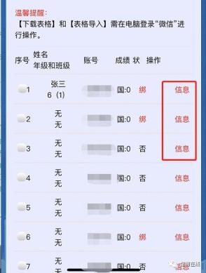 1.“下载表格”:下载表格需用电脑操作,将表格下载(Excel格式,后缀名必须是.xls)保存到电脑,输入本学校学生信息包括姓名、年级和班级,“学校编号”和“账号”均为系统默认,不得更改(每个账号对应一个学生微信号)。