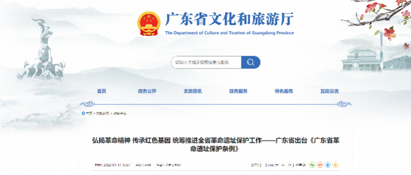 《广东省革命遗址保护条例》(以下简称《条例》)已于1月16日下午在广东省十三届人大常委会第三十九次会议表决通过,自2022年3月1日起实施。《条例》的出台将为广东的革命遗址保护传承工作提供法律依据和制度保障,对弘扬革命精神、传承红色基因、培育和践行社会主义核心价值观具有重大意义。