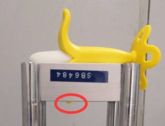 对于液体填充牙胶产品,考虑到婴幼儿在使用的过程中可能咬破牙胶,进而接触到填充液体,参照GB 28482-2012 《婴幼儿安抚奶嘴安全要求》标准要求进行“抗刺穿性能”测试。此标准要求:对安抚奶嘴进行抗刺穿测试时,完全刺穿奶嘴头表面的力应大于30N。