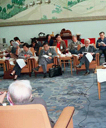 1989年3月30日,七届全国人大法律委员会在人民大会堂举行会议,汇总各代表团对行政诉讼法草案等的意见,进行研究分析。图/新华社