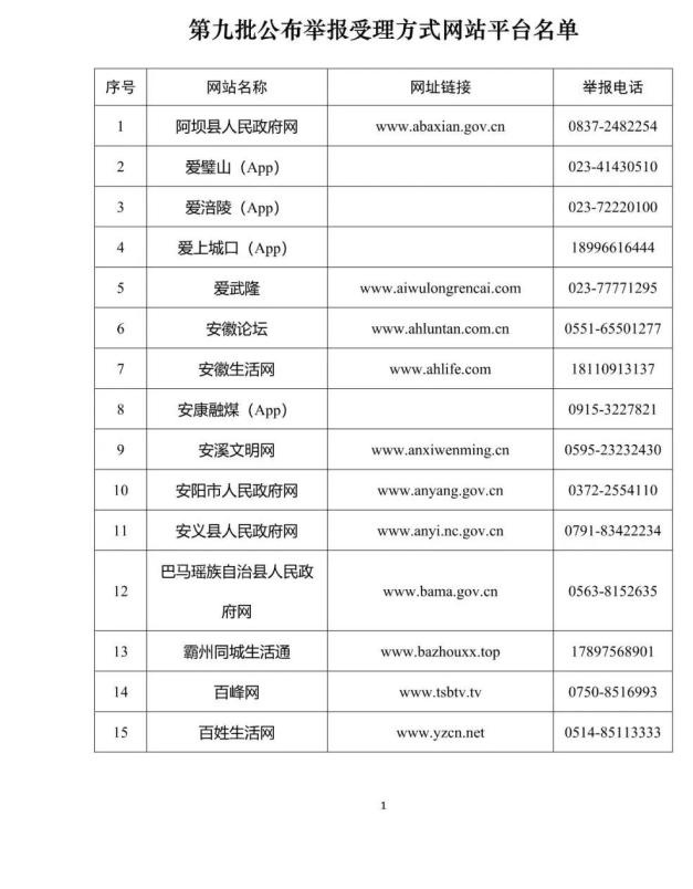 4.617家网站平台向社会统一公布举报受理方式:中央网信办违法和不良信息举报中心近日组织第九批617家网站平台向社会统一公布举报受理方式。至此,向社会统一公布举报受理方式的网站平台已达到4100余家。(新华网)