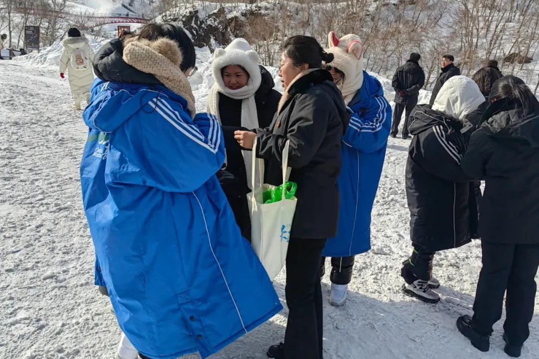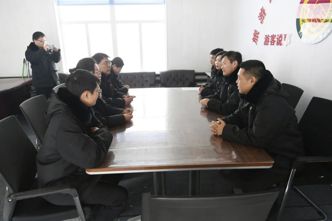 在游客换乘中心,与景区负责人交流,了解景区运行情况、维权服务开展情况,帮助景区完善风险化解措施并做好风险预警提示,向景区负责人发放宣传手册,提醒景区负责人,景区负有保障游客在游玩过程中的人身和财产安全的法律义务。并向春节期间坚守在一线的景区工作人员送去新春祝福及慰问品。