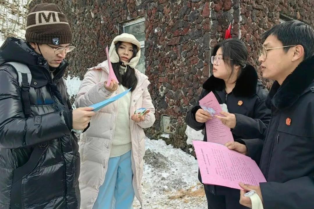 春节将至,长白山北景区游客“爆炸性”增长,为充分利用节前普法时机,进一步增强景区商家与游客法治意识,深入推进法院+景区工作融合新举措,营造平安祥和的节日氛围。近日,白河林区基层法院长白山保护区人民法庭党支部邀请延边林区中院第二党支部开展“新春走基层 普法送祝福”共建活动,为景区商家和游客送上了一份新春法治“大礼包”。