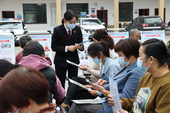 11月25日,公开听证会后,检察官向群众进行普法宣传。