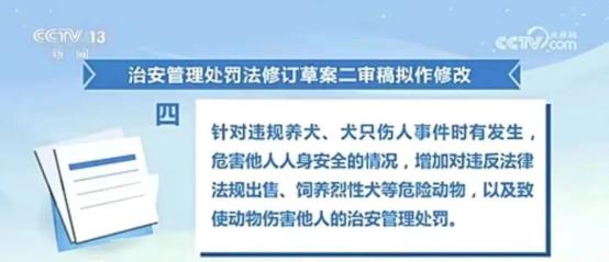 6月21日,据全国人大常委会法制工作委员会记者会介绍,我国拟就烈性犬伤人修法。针对违规养犬、犬只伤人等事件,拟增加对违反法律法规出售、饲养烈性犬等危险动物,以及致使动物伤害他人的治安管理处罚。
