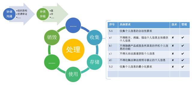 个人信息保护方面:网络安全法和GDPR等涉及个人信息保护法律法规的实施,标志着从国家层面对个人信息的重视程度逐步提升。组织从管理层保障个人信息保护的人、财、物等需求,明确个人信息分类分级标准,达到组织各个层面对不同个人信息的认知的统一,再按照数据生命周期完善相应的技术和管理措施,最终满足个人信息保护的合规要求。如果组织按照GB/T 35273-2017完善个人信息保护管理和技术措施,则应该分解具体的条款要求后,加入CPA模型。以数据收集为例,如图3所示。