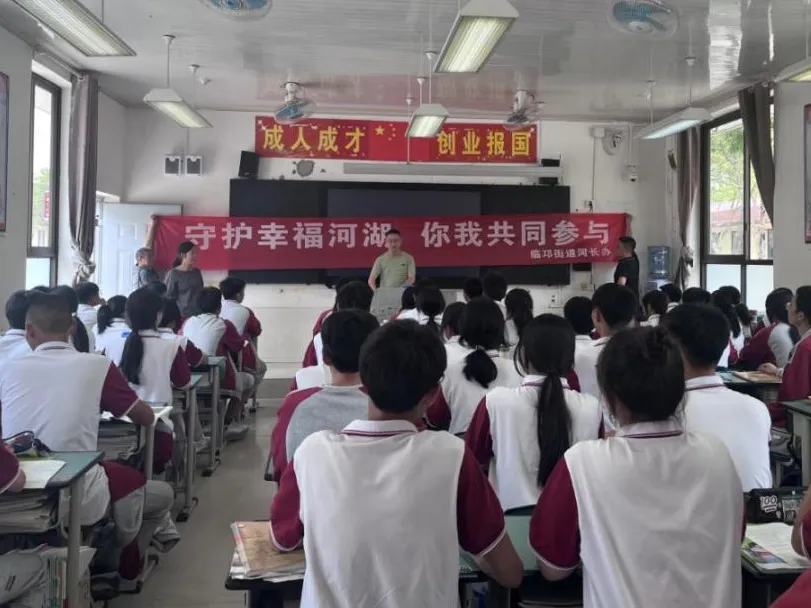 邛崃市河长制办公室会同临邛街道前往强项中学,由镇级河长向同学们讲解为什么要推行河长制、实行河长制的意义以及河长制的主题思想,倡导同学们积极成为家乡河流的守护者。