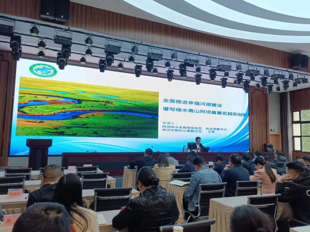 近日,阿坝州河长制办公室联合州委党校开展河湖长制“七进”进党校活动,州水务局党组成员、机关党委书记王军为州委党校124名学员带来“全面推进幸福河湖建设 谱写绿水青山阿坝篇章实践和创新”专题课程。