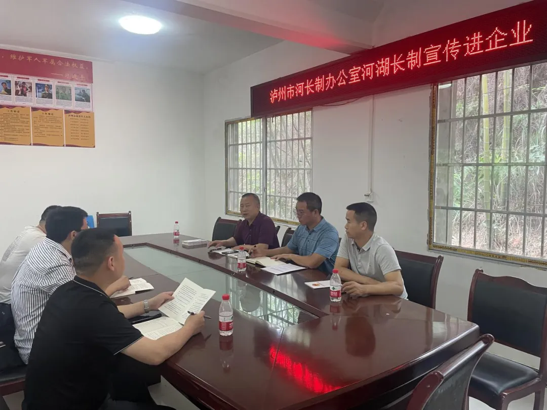 5月21日,泸州市河长制办公室走进纳溪区河坝水库项目部,向施工单位宣传河湖长制内容。