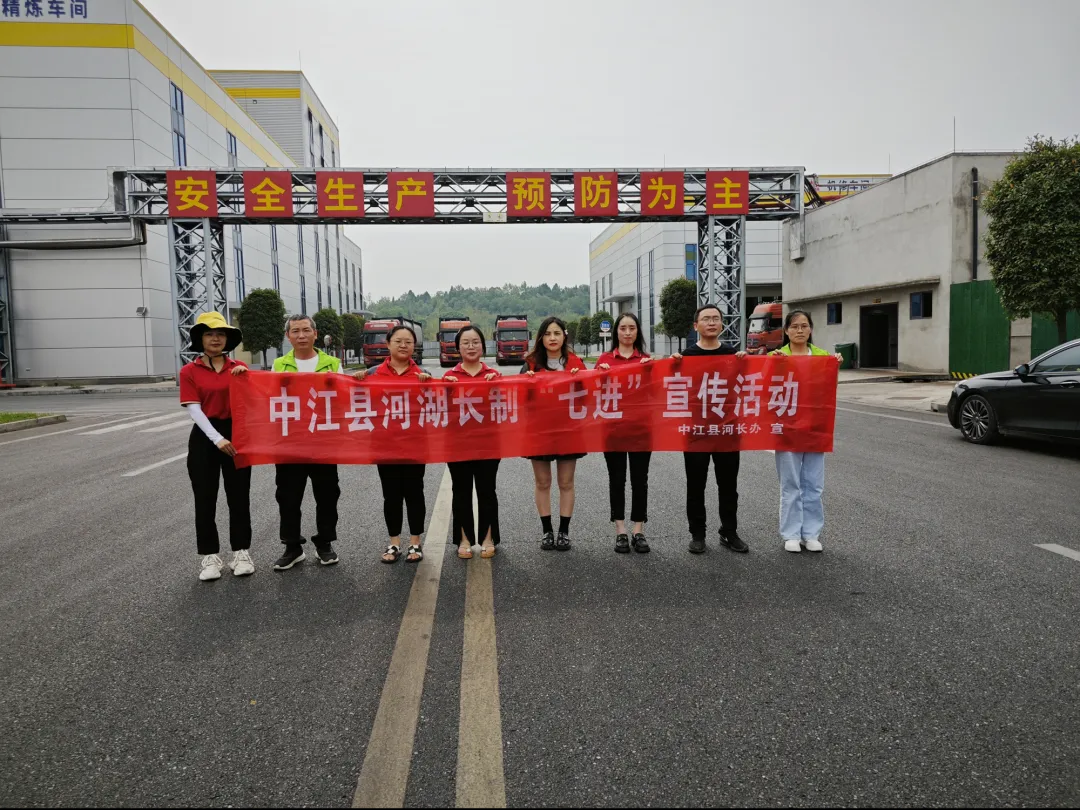 5月21日,中江县河长制办公室走进德阳市年丰食品有限公司,开展河湖长制“七进”进企业宣传活动。