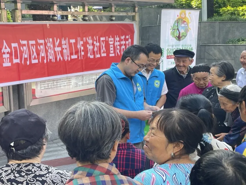 活动中,工作人员通过向社区居民群体发放宣传材料、现场讲解等方式,引导和呼吁大家积极支持河湖长制工作, 多关注爱护身边河湖资源,不在河道乱扔垃圾、不乱排乱放生产生活污水,让优质的水环境成为实现水生生物多样性和生态平衡目标的坚定保障。