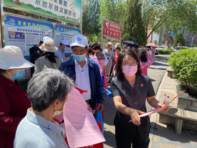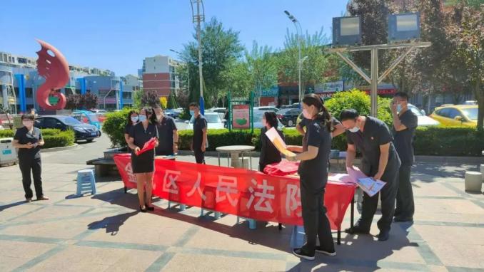 为深入贯彻落实习近平生态文明思想,提升全社会环境资源保护意识,引导广大群众自觉践行绿色生活方式,树立正确的环境保护观念,在2021年6月5日第50个“世界环境日”当天,金凤区人民法院民事审判第三庭围绕“人与自然和谐共生”世界环境日主题,在金凤区湖畔嘉苑小区开展“世界环境日”普法宣传活动,向群众宣传环境法治理念,增强群众环保法律意识。