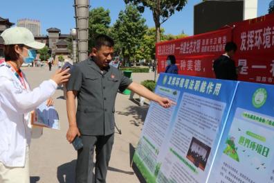 活动中,通过悬挂横幅、摆放宣传展板、设置咨询台、发放环境保护法规手册及环保袋、现场讲解等方式,向群众普及环保知识、新发展理念及相关法律法规,呼吁群众从点滴小事做起,绿色生活,低碳出行,做环境保护的倡导者、行动者和宣传者。
