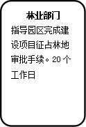 17、林业部门:指导园区完成建设项目征占用林地审批手续,依职权提出豁免事项、承诺事项清单,20个工作日。