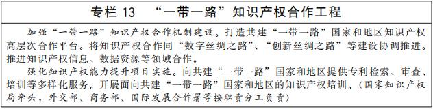 加强知识产权国际合作机制建设。巩固和完善“一带一路”知识产权合作,充分利用“一带一路”知识产权合作平台,扩大合作项目规模和储备。深度参与金砖国家、中美欧日韩、中日韩、中国—东盟等小多边知识产权合作,加强与各方政策和业务规则交流,支持产业界积极参与相关合作机制。完善跨境司法协作安排,加强防范打击侵犯知识产权犯罪国际合作。(中央宣传部、最高人民法院、最高人民检察院、外交部、公安部、商务部、海关总署、国家知识产权局等按职责分工负责)