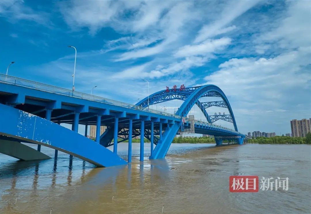 截至7月21日08时,汉江新沟站水位29.15米,超警戒水位1.65米(警戒水位27.5米)。镜头中,蜿蜒的汉江武汉段水位上升明显,沿线跨江桥梁的下部支撑结构已没入江水中。