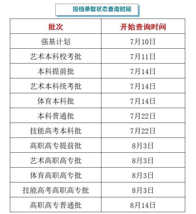 今日起,填报了本科普通批、技能高考本科批投档志愿的高考生可查询自己的录取状态了。