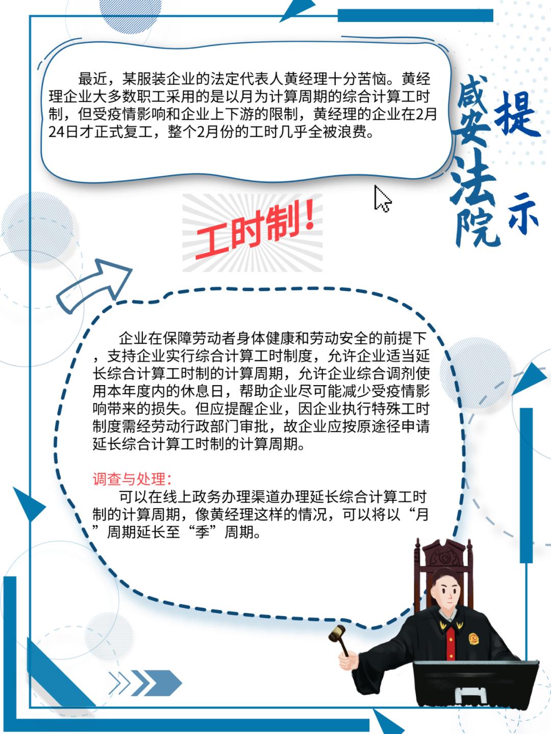 受到疫情影响,很多企业在工时安排上遇到了困难,可以通过申请实行综合计算工时制、延长综合计算工时制的计算周期、与职工协商优先使用各类假期等方式,结合疫情防控工作的需要,灵活安排工作时间。在本案中,原本黄经理企业职工的综合计算周期为月,其2月份工时为166.64小时(月工作日20.83天×8小时),待其延长计算周期为季后,其在2月未用完的工时数可以在整个季度综合使用,在保证职工休息权的前提下,可以适当安排职工加班。