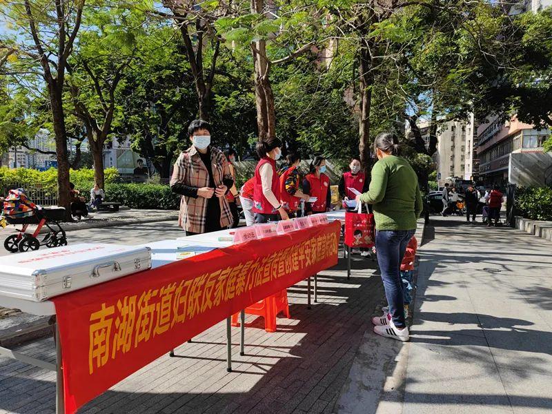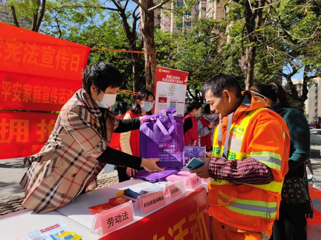 12月3日上午,南湖街道妇联联合9个社区妇联,在12.4国家宪法日即将到来之际,在罗湖创意文化广场开展普法宣传暨创建平安家庭宣传活动。